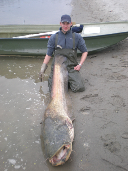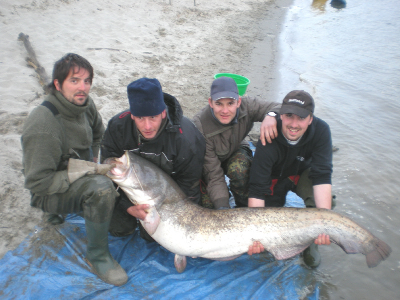 Bereits in der ersten Nacht konnte Marcus einen Wels mit Brasse auf der Steinmontage mit 1,67m fangen. Jedoch der Nachtfrost ( -5Grad ) senkte auch die Wassertemperatur auf 10 Grad herunter. Kein Wallerwetter.