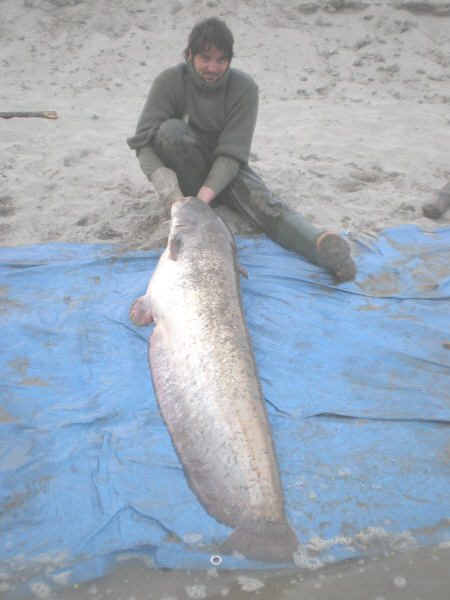 Der Einladung von meinem Freund Robert Welser gegefolgt, besuchten wir Ihn in seinem Wels-Camp in Italien für 4 Tage. Im Camp angekommen, beschlossen wir mit Rücksprache von Robert, uns auf einer Sandbuhne einzurichten. Da der Po 1m unter Normalstand hatte, konnten wir in die so entstandenen Rückbecken problemlos hineinangeln. Leider hatte sich wie auch in Deutschland das Wetter sehr verschlechtert und wir hatten Te2mperaturen um die 7 Grad. Schweinewetter!!